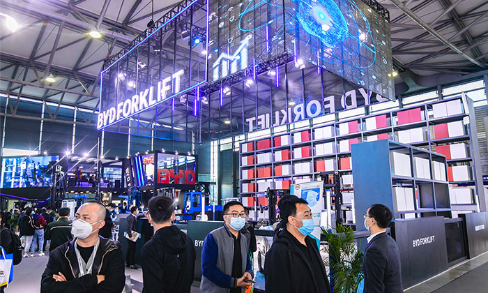 項目名稱:2023第23屆亞洲國際物流(CeMAT ASIA)運輸系統(tǒng)展覽會 舉辦地點:上海新國際展覽中心 合作企業(yè):比亞迪叉車 面積:640㎡展位搭建